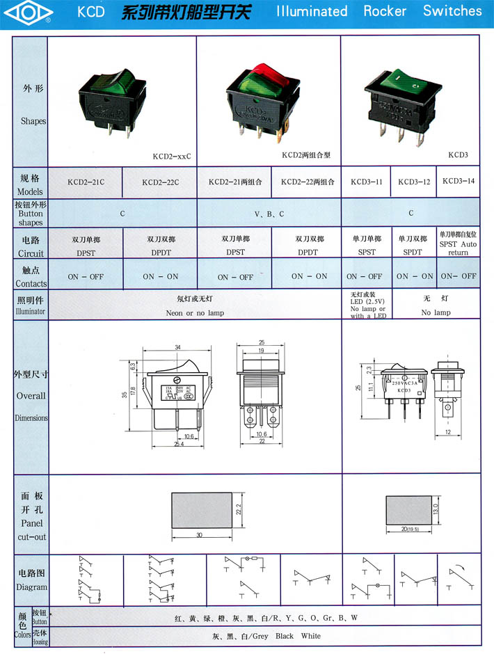 • KCD2/3系列帶燈船型開關(guān) 產(chǎn)品型號:KCD系列帶燈船型開關(guān)