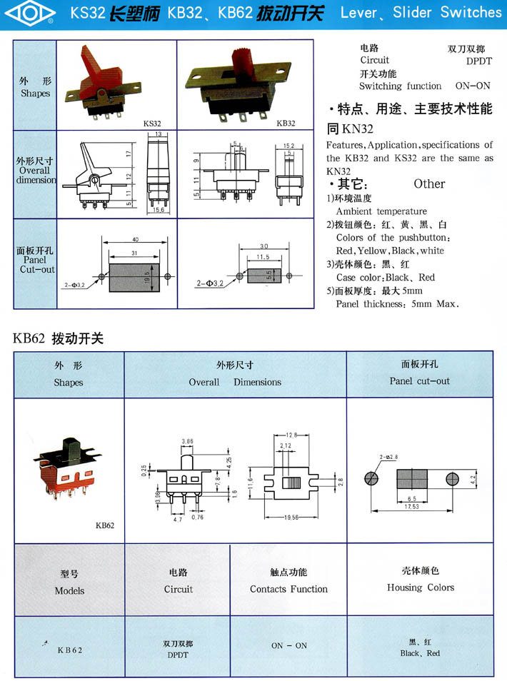 • KS32/KB32/KB62拔動(dòng)開(kāi)關(guān)系列 產(chǎn)品型號(hào):KB62