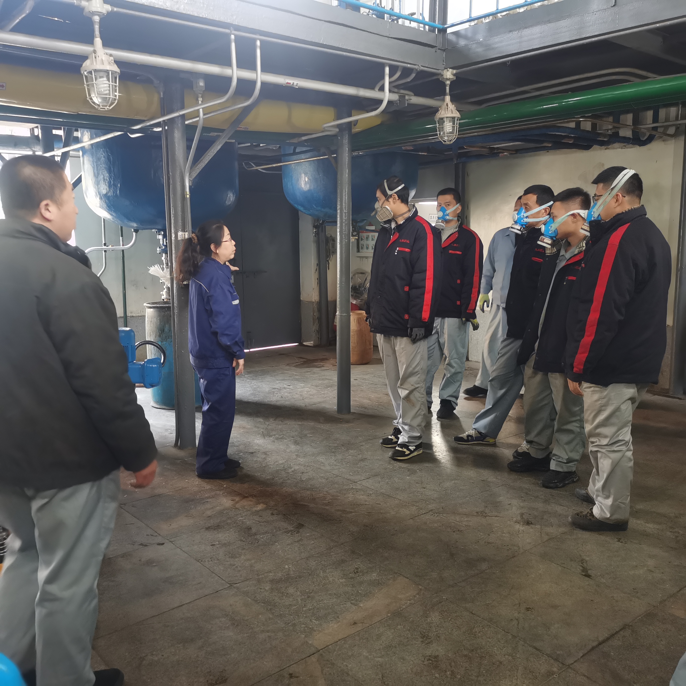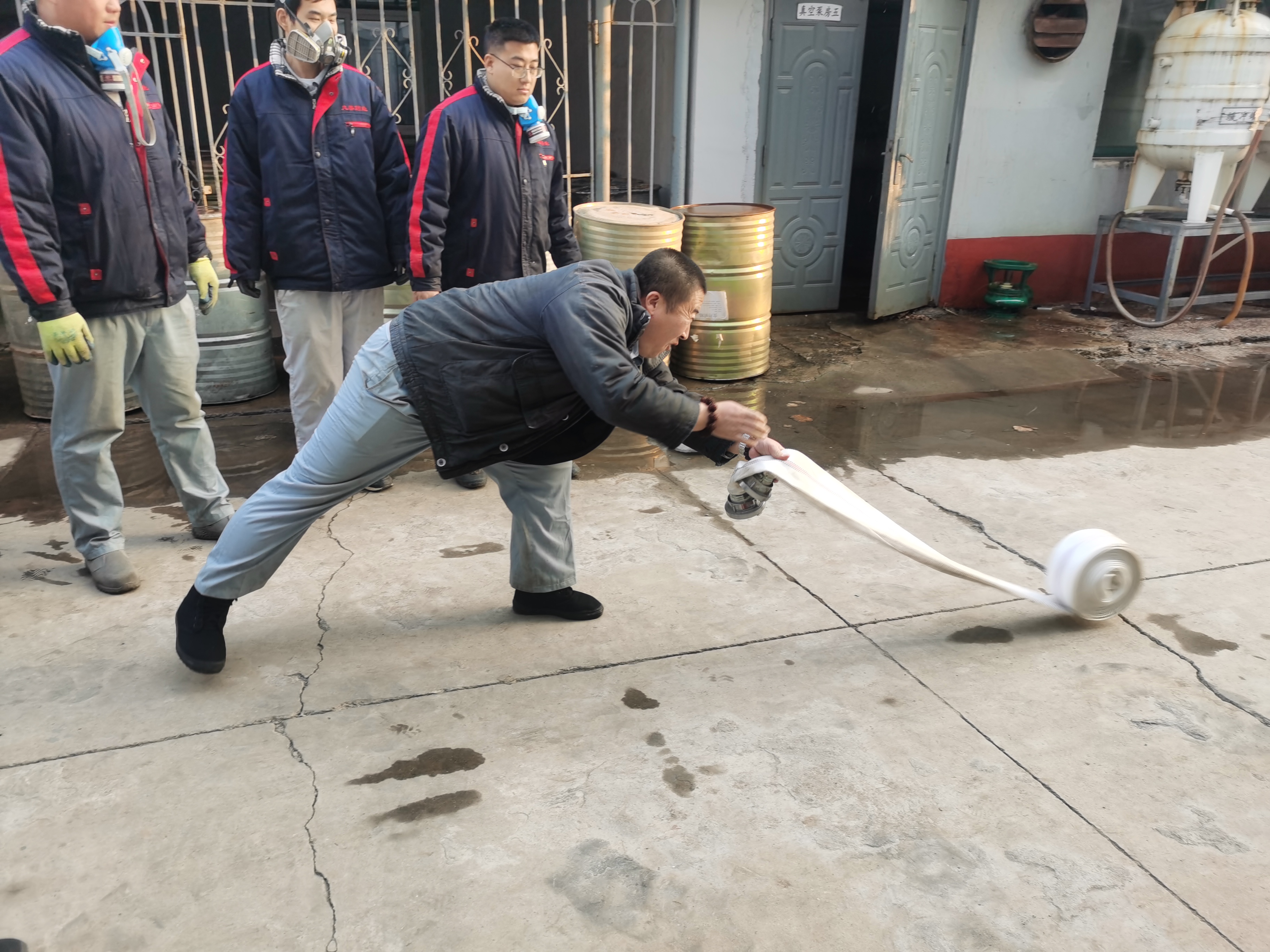 演練模擬原料車間合成一室發(fā)生火災爆炸,車間立即啟動應急預案,進行實際演練。